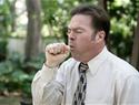 exhale abruptly, as when one has a chest cold or congestion (Freq. 6) - The smoker coughs all day • See Also: cough out, cough up • Derivationally related forms: coughing • Hypernyms: expectorate, cough up, cough out, spit up, spit out • Hyponyms: hack, whoop, clear the throat, hawk • Verb Frames: - Somebody ----s - Somebody ----s something
