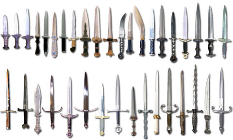 1. a short knife with a pointed blade used for piercing or stabbing (Freq. 1) • Syn: sticker • Derivationally related forms: stick (for: sticker) • Hypernyms: knife • Hyponyms: dirk, kirpan, kris, creese, crease, poniard, bodkin, stiletto • Part Meronyms: haft, helve, hilt 2. a character used in printing to indicate a cross reference or footnote • Syn: obelisk • Hypernyms: character, grapheme, graphic symbol