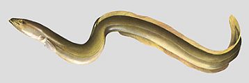 1. the fatty flesh of eel; an elongate fish found in fresh water in Europe and America; large eels are usually smoked or pickled • Hypernyms: fish • Hyponyms: smoked eel, elver • Part Holonyms: common eel, freshwater eel 2. voracious snakelike marine or freshwater fishes with smooth slimy usually scaleless skin and having a continuous vertical fin but no ventral fins • Hypernyms: soft-finned fish, malacopterygian • Hyponyms: elver, common eel, freshwater eel, tuna, Anguilla sucklandii, moray, moray eel, conger, conger eel • Member Holonyms: Anguilliformes, order Anguilliformes, order Apodes
