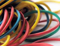 1. a narrow band of elastic rubber used to hold things (such as papers) together • Syn: rubber band, elastic band • Hypernyms: band, elastic device 2. a fabric made of yarns containing an elastic material • Hypernyms: fabric, cloth, material, textile