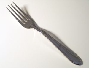 1. cutlery used for serving and eating food (Freq. 4) • Hypernyms: cutlery, eating utensil • Hyponyms: carving fork, salad fork, tablefork, toasting fork • Part Meronyms: prong, tine 2. the act of branching out or dividing into branches (Freq. 2) • Syn: branching, ramification, forking • Derivationally related forms: fork (for: forking), bifurcate, ramify (for: ramification) • Hypernyms: division • Hyponyms: bifurcation, trifurcation, divarication, fibrillation 3. the region of the angle formed by the junction of two branches (Freq. 1) - they took the south fork - he climbed into the crotch of a tree • Syn: crotch • Hypernyms: branch, leg, ramification 4. an agricultural tool used for lifting or digging; has a handle and metal prongs (Freq. 1) • Hypernyms: tool • Hyponyms: hayfork • Part Meronyms: prong 5. the angle formed by the inner sides of the legs where they join the human trunk • Syn: crotch • Hypernyms: angle • Part Holonyms: body, organic structure, physical structure