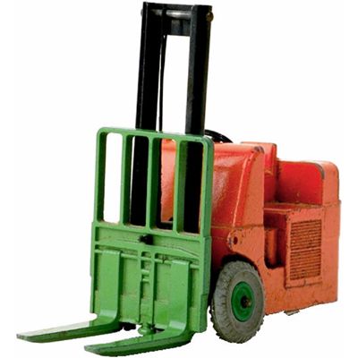 a small industrial vehicle with a power operated forked platform in front that can be inserted under loads to lift and move them