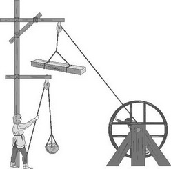 lifting device for raising heavy or cumbersome objects • Hypernyms: lifting device • Hyponyms: block and tackle, headgear, wheel and axle