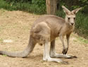 any of several herbivorous leaping marsupials of Australia and New Guinea having large powerful hind legs and a long thick tail • Hypernyms: marsupial, pouched mammal • Hyponyms: giant kangaroo, great grey kangaroo, Macropus giganteus, wallaby, brush kangaroo, musk kangaroo, Hypsiprymnodon moschatus, rat kangaroo, kangaroo rat • Member Holonyms: Macropodidae, family Macropodidae