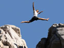1. move forward by leaps and bounds (Freq. 22) - The horse bounded across the meadow - The child leapt across the puddle - Can you jump over the fence? • Syn: jump, bound, spring • See Also: leap out, jump on (for: jump) • Derivationally related forms: spring (for: spring), bounder (for: bound), bound (for: bound), leaper, jump (for: jump), jumping (for: jump) • Hypernyms: move • Hyponyms: pronk, bounce, resile, take a hop, spring, bound, rebound, recoil, reverberate, ricochet, burst, capriole, galumph, ski jump, saltate, vault, leapfrog, overleap, curvet, hop, skip, hop-skip, caper • Verb Frames: - Something ----s - Somebody ----s - Somebody ----s PP - The horses leap across the field 2. pass abruptly from one state or topic to another (Freq. 1) - leap into fame - jump to a conclusion - jump from one thing to another • Syn: jump • Derivationally related forms: jump (for: jump) • Hypernyms: switch, shift, change • Verb Frames: - Something is ----ing PP - Somebody ----s PP 3. jump down from an elevated point - the parachutist didn't want to jump - every year, hundreds of people jump off the Golden Gate bridge - the widow leapt into the funeral pyre • Syn: jump, jump off • Hypernyms: move • Verb Frames: - Somebody ----s 4. cause to jump or leap - the trainer jumped the tiger through the hoop • Syn: jump • Cause: jump, bound, spring • Verb Frames: - Somebody ----s something - The men leap the horses across the field
