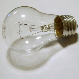 electric lamp consisting of a transparent or translucent glass housing containing a wire filament (usually tungsten) that emits light when heated by electricity • Syn: light bulb, bulb, incandescent lamp, electric light, electric-light bulb • Hypernyms: electric lamp • Part Meronyms: filament