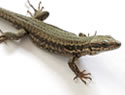 1. relatively long-bodied reptile with usually two pairs of legs and a tapering tail (Freq. 1) • Hypernyms: saurian • Hyponyms: gecko, iguanid, iguanid lizard, worm lizard, night lizard, skink, scincid, scincid lizard, teiid lizard, teiid, agamid, agamid lizard, anguid lizard, legless lizard, Lanthanotus borneensis, venomous lizard, lacertid lizard, lacertid, chameleon, chamaeleon, monitor, monitor lizard, varan 2. a man who idles about in the lounges of hotels and bars in search of women who would support him • Syn: lounge lizard • Hypernyms: gigolo