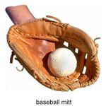 1. the handwear used by fielders in playing baseball • Syn: baseball glove, glove, baseball mitt • Hypernyms: baseball equipment 2. the (prehensile) extremity of the superior limb - he had the hands of a surgeon - he extended his mitt • Syn: hand, manus, paw • Derivationally related forms: paw (for: paw), hand (for: hand) • Hypernyms: extremity • Hyponyms: fist, clenched fist, hooks, meat hooks, maulers, right, right hand, left, left hand • Part Holonyms: arm, homo, man, human being, human • Part Meronyms: digital arteries, arteria digitalis, metacarpal artery, arteria metacarpea, intercapitular vein, vena intercapitalis, metacarpal vein, vena metacarpus, palm, thenar, finger, ball, metacarpus