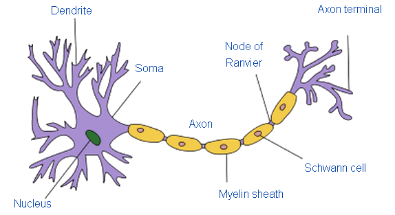 a cell that is specialized to conduct nerve impulses • Syn: nerve cell • Derivationally related forms: neural, neuronic, neuronal • Hypernyms: somatic cell, vegetative cell • Hyponyms: ganglion cell, gangliocyte, brain cell, motor neuron, efferent neuron, motor nerve fiber, motoneuron, sensory neuron, afferent neuron • Part Holonyms: nervous system, systema nervosum • Part Meronyms: axon, axone, dendrite