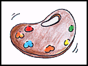 2. board that provides a flat surface on which artists mix paints and the range of colors used (Freq. 1)