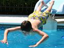 1. a brief swim in water (Freq. 1) • Syn: dip • Derivationally related forms: dip (for: dip) • Hypernyms: swimming, swim 2. a steep and rapid fall • Hypernyms: drop, fall