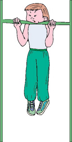 an arm exercise performed by pulling yourself up on a horizontal bar until your chin is level with the bar
